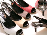 型押革のオープントゥバックストラップ